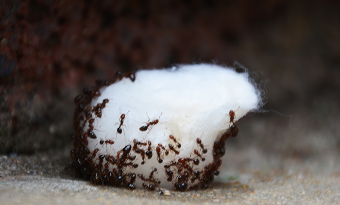 Як зібрати цих комах в одному місці? Просочіть ватну кульку розчином з гарячої води (2 склянки), цукру (півсклянки) і бури (півтори столової ложки). Далі просто покладіть приманку на підлозі в кімнаті.