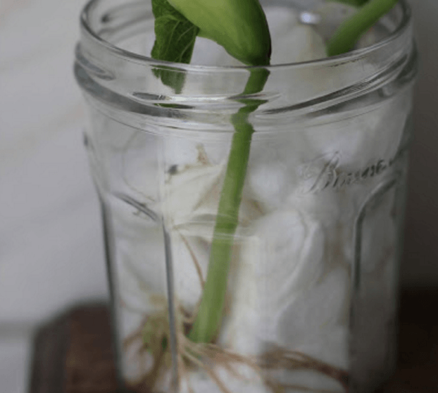 Просто просочіть ватні тампони водою, покладіть їх у ємність, а після помістіть туди паросток.