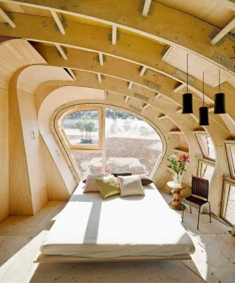 Округла форма дозволяє досягти максимального внутрішнього обсягу, при невеликій зовнішній поверхні. А то, що будинок зведений на трьох «ногах» дає можливість його жителям відпочити в тіні на свіжому повітрі.