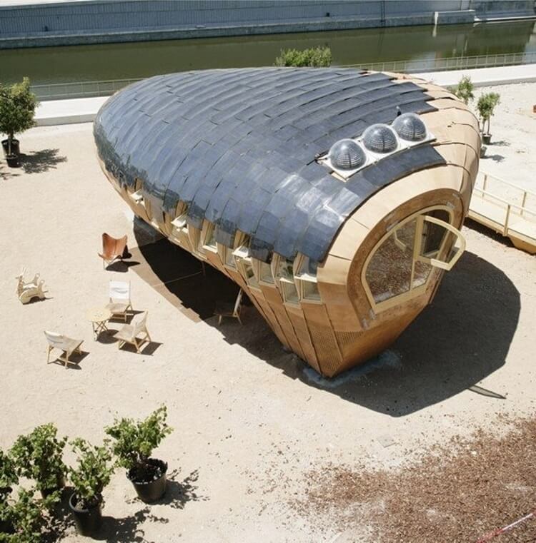 Цей будинок придумали і побудували в Мадриді іспанці з Інституту прогресивної архітектури. Він знаходиться на повному самозабезпеченні. Дах будинку покритий сучасними гнучкими фотогальванічними панелями, які використовують енергію сонця і роблять це настільки ефективно, що будинок виробляє енергії в три рази більше, ніж споживає.