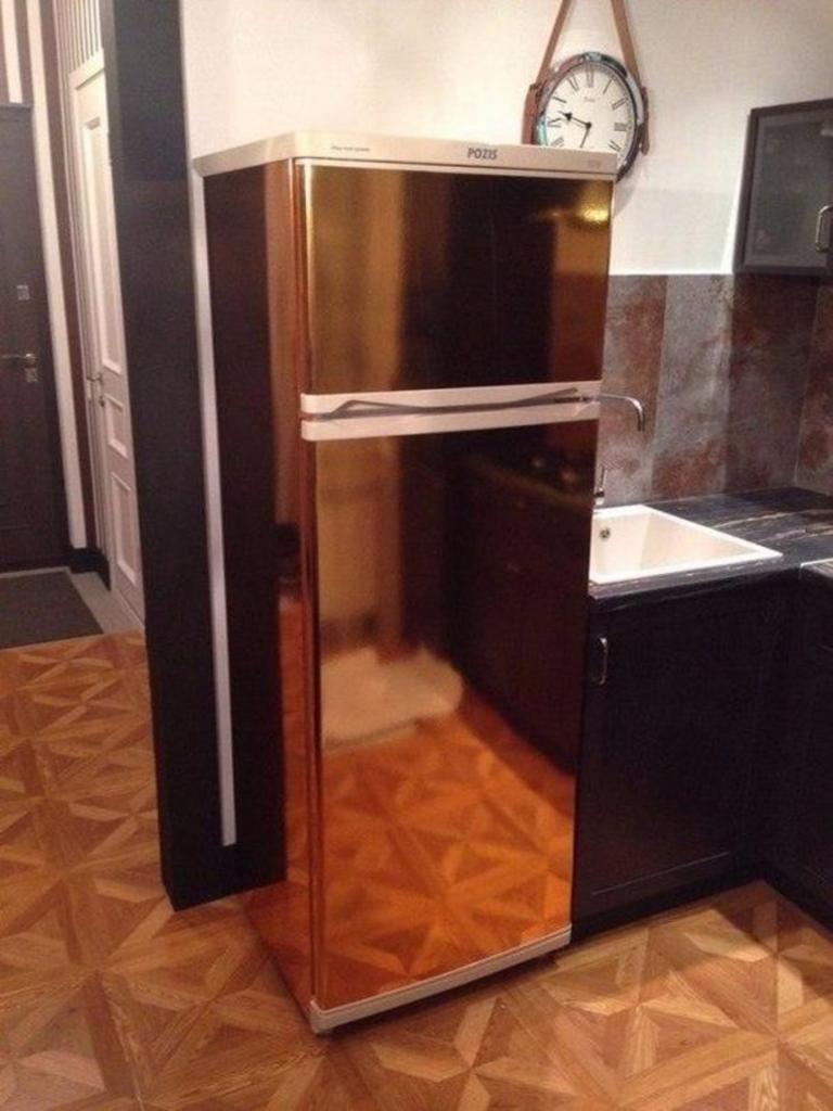 Зрозумівши, що кухонний дизайн псує старенький холодильник білого кольору, молодий чоловік придумав спосіб як зробити його красивим. Він обклеїв його голографічного самоклеючою плівкою. Погляньте, що у нього вийшло в результаті.