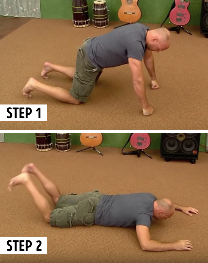 Якщо ви подавилися і допомоги немає, потрібно стати на коліна і різко впасти грудьми на підлогу, піднявши руки. Повітря виштовхне перешкоду і ви зможете дихати.