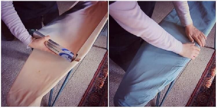 Зніміть з прасувальної дошки чохол і застеліть фольгою всю поверхню дошки. Фольга буде перебувати під чохлом. Намагайтеся постелити її максимально рівно, без заломів і складок.