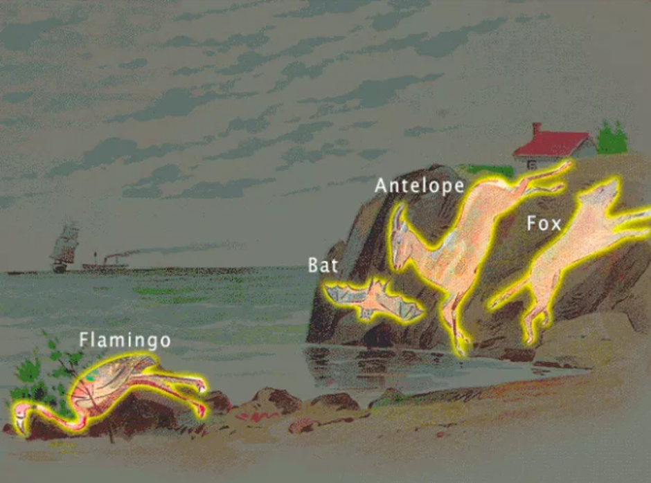 Ви думаєте, що у Вас аналітичний склад розуму? Давайте подивимося, наскільки швидко Ви зможете знайти всіх чотирьох захованих тварин на цій анімації. Знайдіть цих захованих тварин на анімації: лисицю, кажана, антилопу і фламінго.