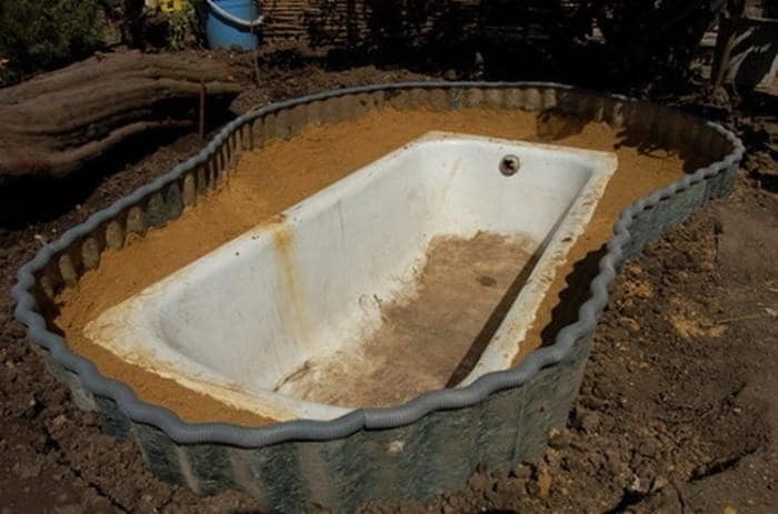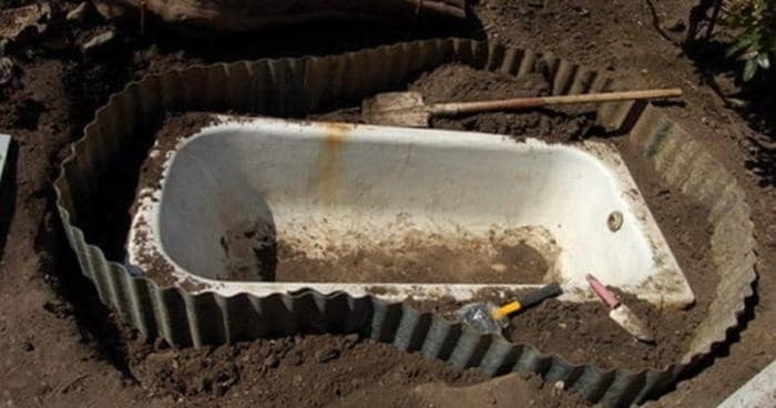 Один кмітливий чоловік одного разу вирішив, що старій ванні, якою довгий час користувалися він і його родина, місце не на звалищі, а на його присадибній ділянці. В саду він викопав яму і помістив в неї цей резервуар для води.